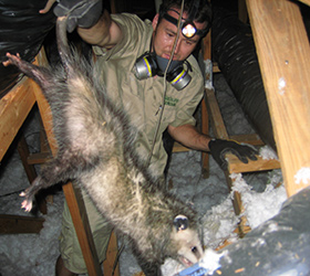 Inspect the exterior of the home, including the roof and all vents, to find out how the animals are getting in. Also inspect inside the attic to identify animal and damage.